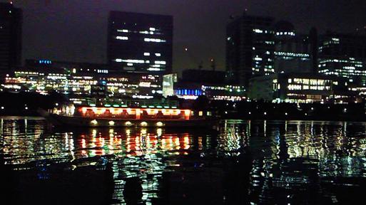 レインボーブリッジとお台場に挟まれ、ゆらゆら夜景をうつす水面がキレイです。