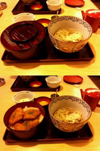 新潟名物の「タレかつ丼」+なめこ蕎麦のセットメニューです。