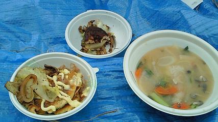 きのこや野菜のたっぷり入ったお味噌汁やお好み焼きなど、おいしかったです(*^◇^)