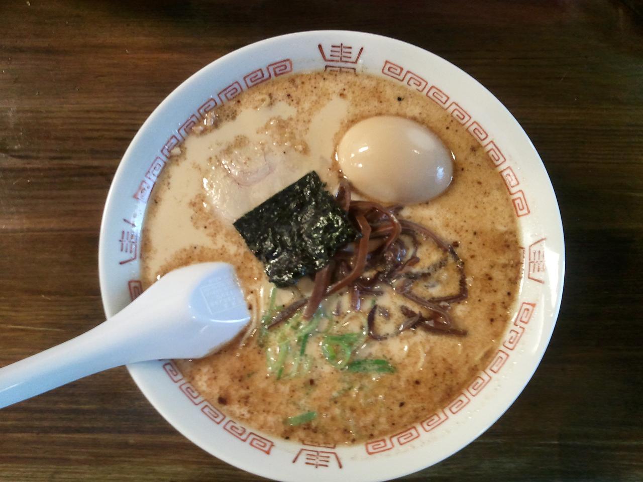 スープはもちろん豚骨ですが、魚系のダシも混ざっているようで、ゴマがきいてコクがあります。