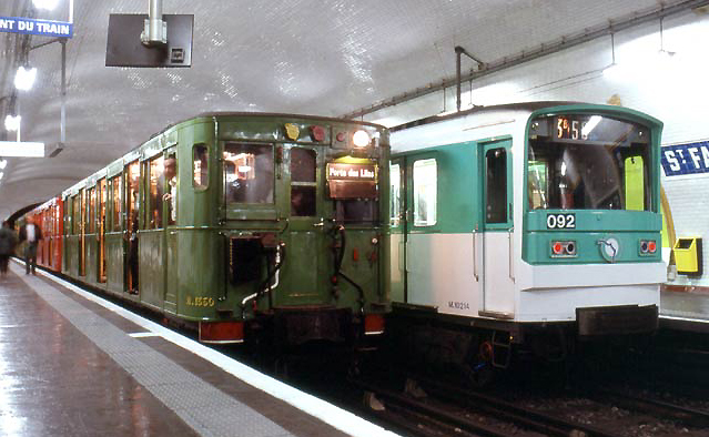 この写真は2006年のころらしい。旧いパリの地下鉄車両は、こんな風にたまに記念等で走らせているようです。すごいね!