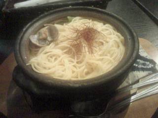 早速アサリとトマトの辛口土鍋パスタ(900円)