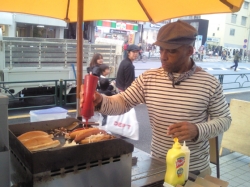 『ニューヨーク♪ ニューヨーク♪ おいしい おいしい まちがいないっ!!』何かと思ってみて見るとホットドック屋さんでした。