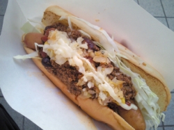 ビールと食べたホットドックレギュラー、ホットドックチリは本当に美味しかったです。