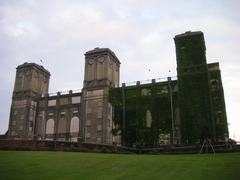 しばらく、フェンス越しに歩いてみると、ちょっとアメリカの景色が見えたように思います。前方に何やら異様な形の建物が見えてきます。廃墟です。