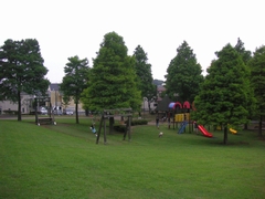 丘の斜面になっていて、遊具もいくつかあって、心地よい感じの公園です。