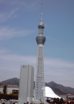 世界中の建造物がミニチュアサイズで 展示してあるのですが、 一足先に現在、本物は建造中の スカイツリーも既に建設されていました。