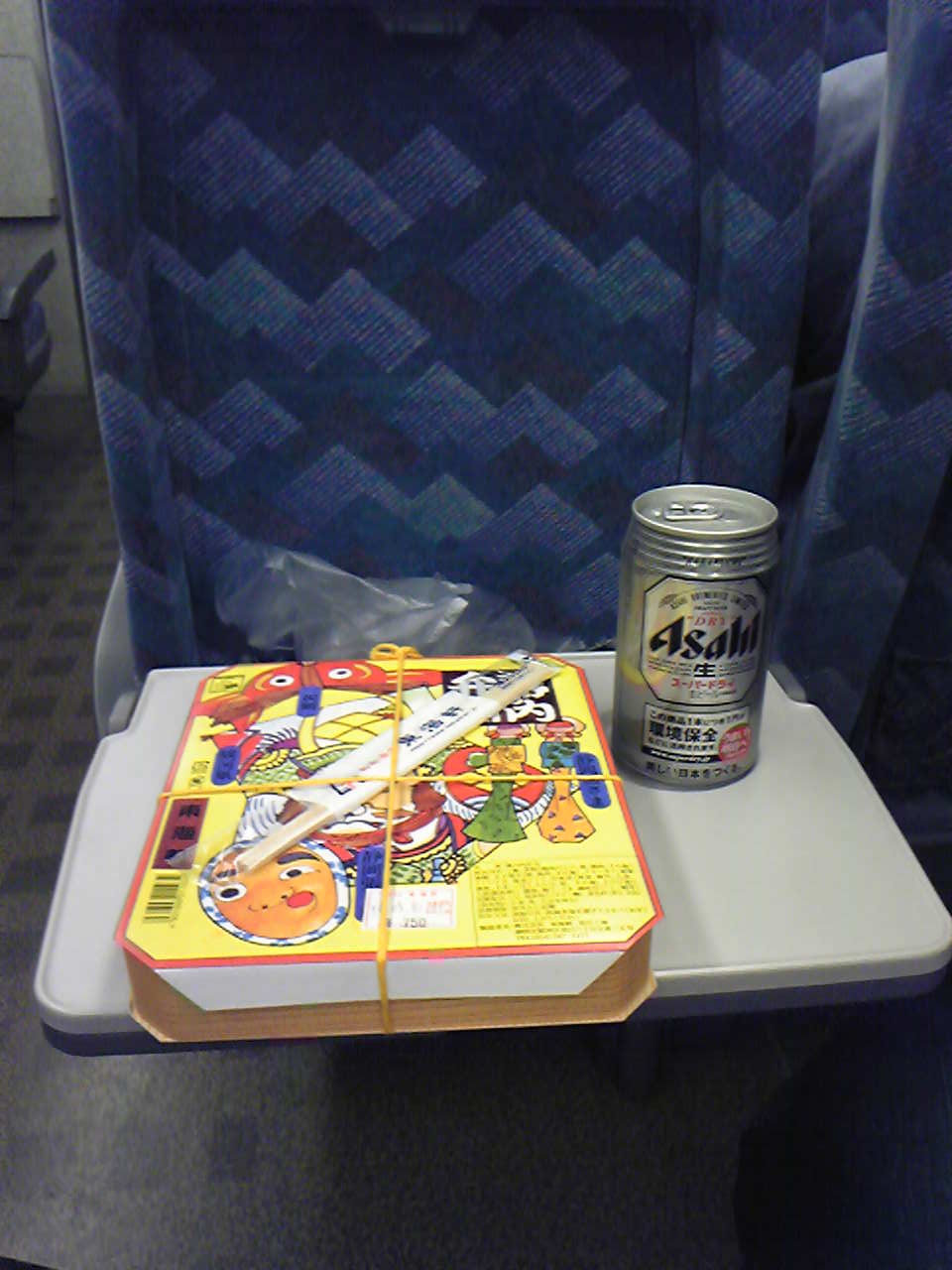 新幹線の車中でも缶ビールを開けて・・・