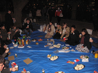 この時期の花見は4月なのに毎年すごく寒く、今年は特に例年以上に寒く感じられましたが、いざ乾杯してお酒が入ったら、それも感じられないほどの盛り上がり!
