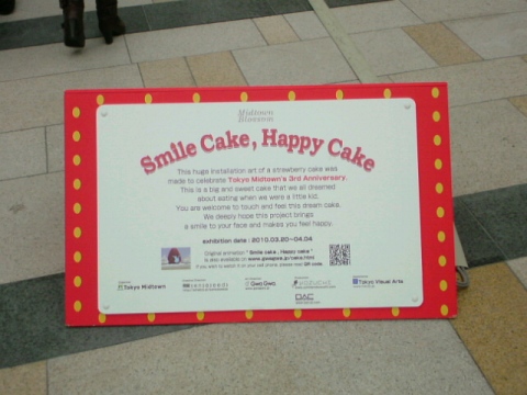 そのため、3月20日(土)から4月4日(日)までの期間限定イベント「Midtown Blossom 2010(ミッドタウン ブロッサム 2010)」で、「東京ミッドタウン」の入口に巨大なケーキが登場!!