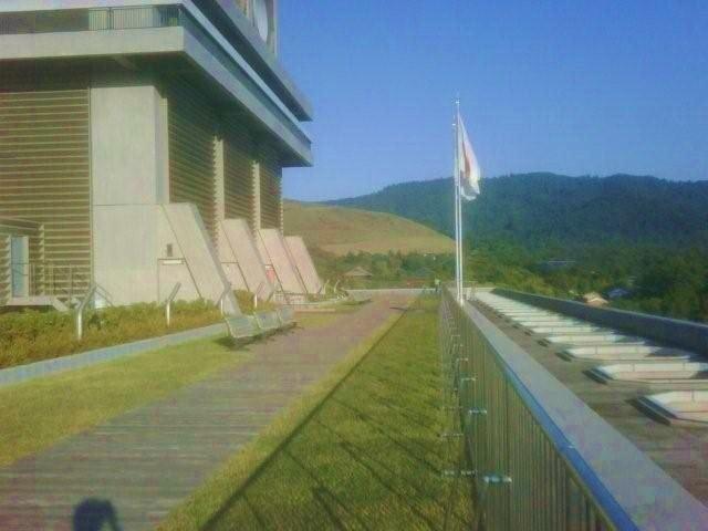 屋上の感じは右の写真を見て頂ければわかると思いますが非常にきれいに整備されており芝生があったりベンチがあったりとリラックスできるようになっております。