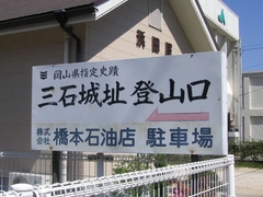 さて、駅からしばらく歩いたところで「三石城址 登山口」という看板が目に入りました。