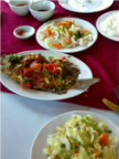 船の中での食事はエビやらカニやら魚介類がメインで出され、そのほか、野菜、