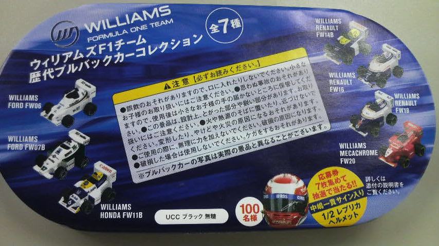 内容は、ウィリアムズ歴代のF1カーのチョロQなのですが、他のシリーズと同様で、