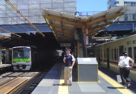 クルマのように自由に走り回れるわけにはいかない鉄道では、乗り入れをする際には、乗り入れ相手の「規格(車両や線路の幅、保安装置など各種規格)」に合わせる必要があります。先日のエントリーで「阪神と近鉄の相互乗り入れは車体の規格が全然違うことがすごい」と書いたように、通常は相互乗り入れの場合、車体の長さ、ドアの数などは極力合わせるようになっています。参考までに、右の写真は京王線の調布駅。都営新宿線からの乗り入れ車がやってきます。外観は京王線とまったく違いますが、性能や取り扱い方法は同じ設計となってます。