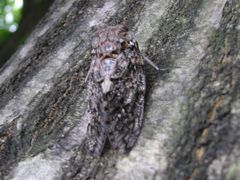 散歩中、ふと木の幹を見るとセミの姿が。これこそがニイニイゼミですね。