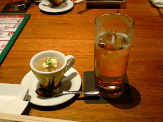 写真は最初に出てきた突き出しですが、エスプレッソのカップに入って出てきました。