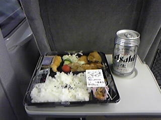 写真は先日、大阪から東京へ戻る新幹線の中の夕食です。