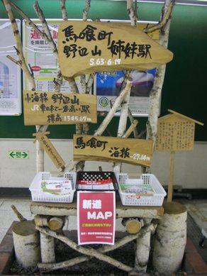 馬喰町駅とJR小海線の野辺山駅が姉妹駅であることを紹介するスペースです。