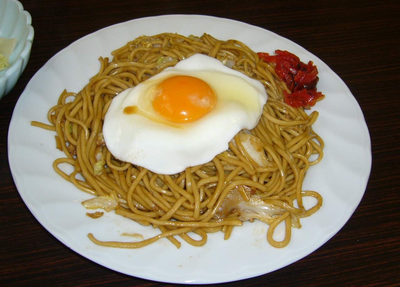 「横手やきそば」は茹でた太麺、しゃばしゃばのソース、目玉焼きと福神漬けのトッピング。この組み合わせが何とも言えない風味を出しているのです。