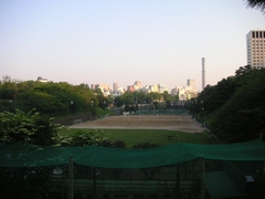 少し歩くと四谷に来ました。上智大学のグランドだと思うのですが、都心にこんな広大な場所もあるんですね。