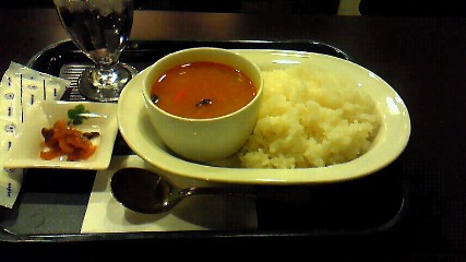 で、出てきたのがコチラのカレー。カレーはルーのような感じではなくスープ状です。