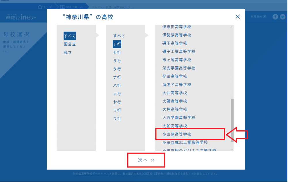 ※ちなみに、赤枠の「高校データベース」を押すと、当社の高校DBの紹介ページにとびます。