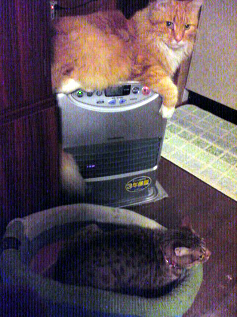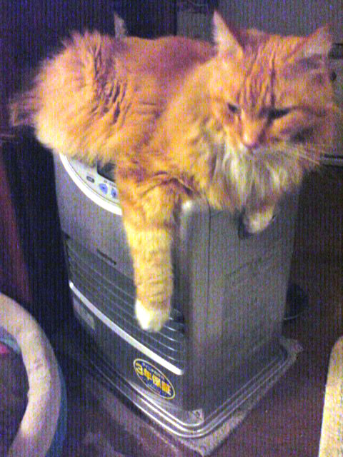 →猫の下にあるファンヒーターは小さいものではないことに気がついていただければ