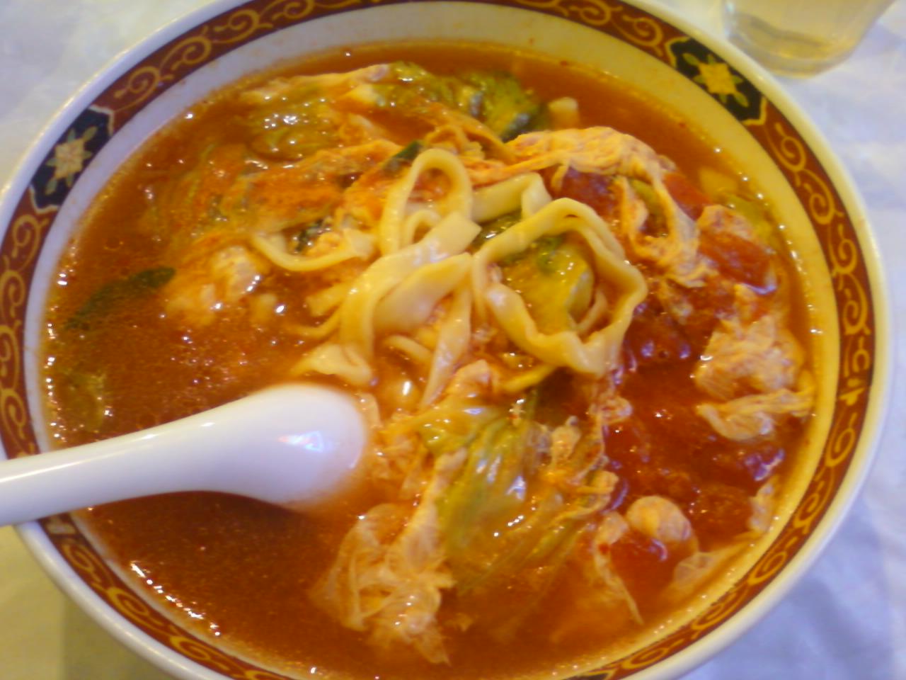 出てきた麺は、写真を見ても分かるとおり、見た目が強烈に辛そう。
