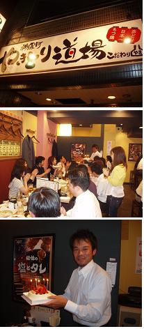 8月は夏休みと大阪支社開設などの、イベントが盛りだくさんだったため、8月のMVP&誕生会&新人歓迎会をまとめた、大イベントが5日(金)の夜にすずらん通りの「やきとり道場」にて、開催されました。