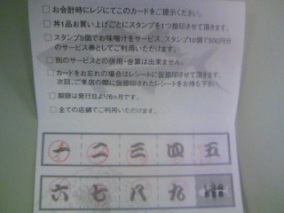 5スタンプで味噌汁サービス、10スタンプで500円の割引券になります!