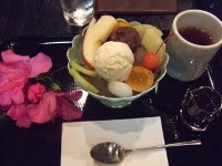 これは、散歩途中にあった甘味処で食べたぜんさいとあんみつです。