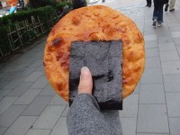これは、散歩途中の路面店?で醤油の香ばしい匂いに誘われて買った巨大煎餅です。