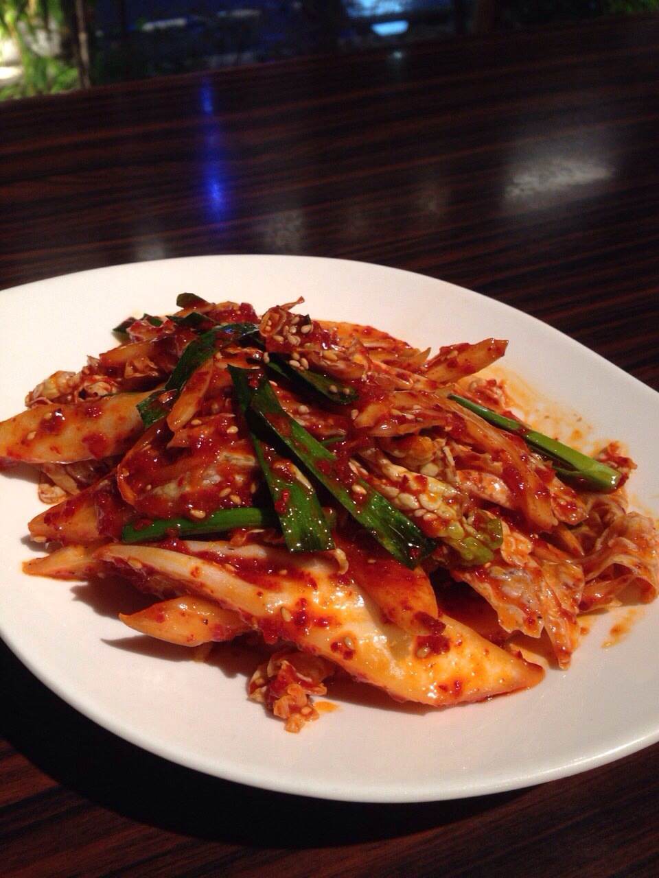 おススメのこっちょりキムチから(白菜がつけていなくて生の白菜にタレを絡めてあります)