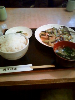 長なすと豚肉のピリ辛炒め定食、950円。