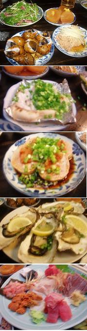 まずは前菜として「バイ貝」「ほたるイカのサラダ」「大根の煮付け」からスタートし、「あん肝」「ふぐの白焼き」「焼き牡蠣」など、