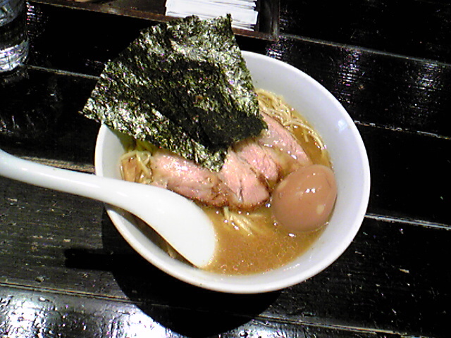 魚系のダシでややコッテリしたスープ、トロットロのチャーシュー、黄身によーく味のしみた玉子、やや太めの麺は絶妙!