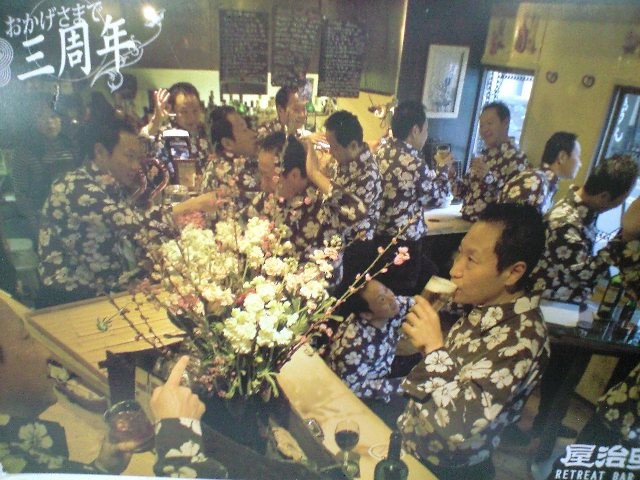 4月4日、今日はご近所の立ち飲み屋さん明治屋2ndさんの3周年記念日だそうです。