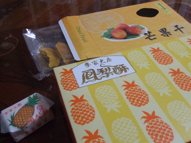 写真はお土産にいただいた台湾銘菓のパイナップルケーキとドライマンゴー。