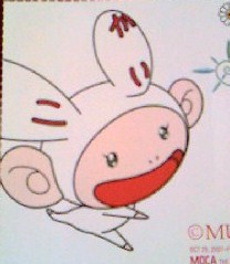 長い耳を持つうさぎ風のキャラクターが「カイカイ」
