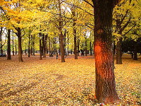 そう、落ち葉の絨毯とクリスマスイルミネーションです。