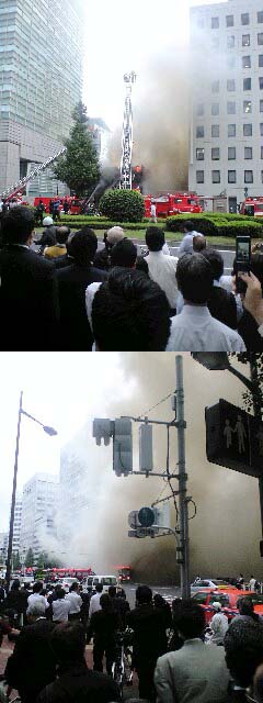 オフィス街なので、あっという間のひとだかり。幸いけが人もなく、知人のビルも燃えなかったそうです。しかし、午後は部屋が煙り臭くなって入れなかったって。スーツにも強烈な煙のにおいが付いてすぐクリーニング。