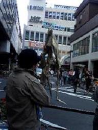 唖然とする人たちに、三軒茶屋の大道芸人祭のビラを撒く、おつきの人たち。どうやらこれは、お騒がせのイベントのようです。