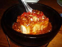 今日は、マスター一押しという「麻婆豆腐」にトライしてみました。これをグチャグチャにかき混ぜて、フーフー言いながら食べると良い、ということですが、赤いとおがらしが一杯で、さぞや辛いだろうと思ったら、やっぱり相当辛い!でもうまい!!ってな感じで、癖になっちゃう味でした。