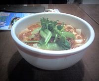 挽き肉たっぷりでボリューム満点、添えられたパクチーでお口スッキリ後味サッパリ。
