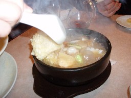 熱々のおこげの上に、たくさんの具が入ったあんかけをのせ、マゼマゼして食べるます♪