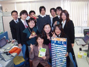 ちなみに正面左の緑色のブラウスを着ている、可愛い、お姉さんの手の上に載っているのが、僕お茶犬だよ。見えるかな?