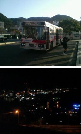 少ない時間の中、バスと夜景をパシャリ。