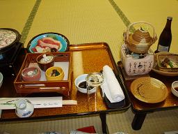 見て見て!松茸の土瓶蒸しでしょ。松茸の炭火焼き、すき焼きにまで松茸が入ってるんだ。もちろん、松茸の炊き込みご飯もついてるんだ!!