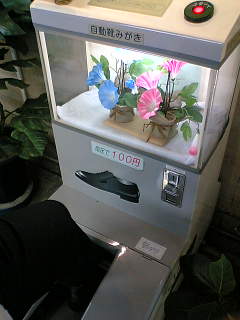 靴みがき1回100円らしく、めずらし物好きのにっぴぃはちょっとチャレンジ!!
